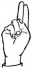 На ћирилици написано РАДНА ВУЧИЋЕВИЋ састоји се из 14 слова [?]. Исписано ћириличном једноручном азбуком за глувонеме:
